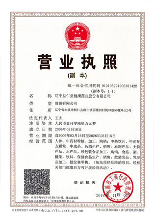 遼寧益仁堂健康藥業(yè)股份有限公司成立于2006年,注冊(cè)資本1060萬元,占地面積23677平方米。企業(yè)走公司加農(nóng)戶加合作社加生產(chǎn)銷售為一體的產(chǎn)業(yè)化路線。現(xiàn)擁有有機(jī)人參基地一萬一千兩百多畝。公司前身“益仁堂”參號(hào)是由公司董事長(zhǎng)王杰先生祖輩王寶善于清宣統(tǒng)二年(1910年)創(chuàng)辦的老字號(hào)企業(yè)。“益仁堂”寓意“